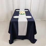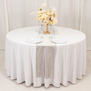 Enhance your reception tables with table runners from Leilani Wholesale! This elegant 12" wide x 108" long runner features a wrinkle-free design, making it the perfect complement to your tablecloths and napkins. Add a touch of glitz and glamour to your party table setting with ease. Lightweight and flexible, this table runner can be easily cut to your desired size, allowing for versatile decorating options. Ideal for home décor, weddings, parties, events, bridal showers, anniversaries, and any special occasion!
