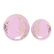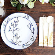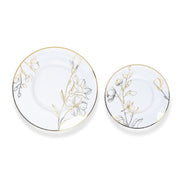 20 Round Plastic Salad Dinner Plates with Gold Floral Design - Disposable Tableware