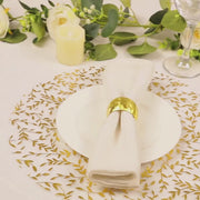 50 Mesh Organza Round Placemats with Gold Foil Leaf Vines - White