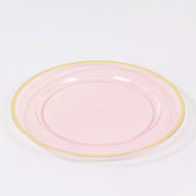 Accent your party tables with plastic charger plates from Leilani Wholesale! Featuring a metallic rim, these elegant charger plates will enhance the appearance of your reception tables. They are easy to clean, just wash them with hot water. Great to use with fine china and to protect the linens from the plates and bowls.