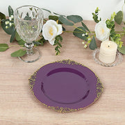 10 Round Plastic Salad Dinner Plates with Embossed Baroque Rim - Disposable Tableware