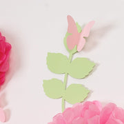 21 Tissue Paper Pom Poms Chrysanthemum Flowers with Butterflies and Leaves Set