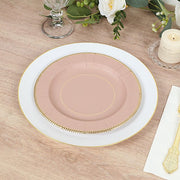 25 Metallic Round Paper Salad Dinner Plates with Textured Rim - Disposable Tableware