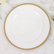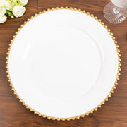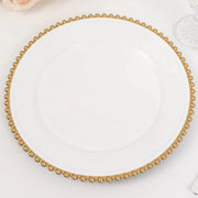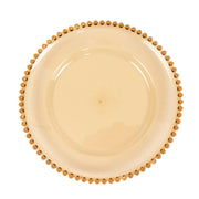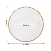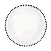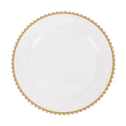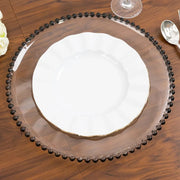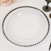 Accent your party tables with classic round charger plates from Leilani Wholesale! Featuring a beaded rim design, these clear charger plates will enhance the appearance of your reception tables. They are easy to clean, just wash with hot water. Great to use with fine china and to protect the linens from the plates and bowls.