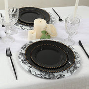 Accent your party tables with plastic charger plates from Leilani Wholesale! Featuring an irregular round shape with an floral pattern designed, these elegant charger plates will enhance the appearance of your reception tables. They are easy to clean, just wash them with hot water. Great to use with fine china and to protect the linens from the plates and bowls.