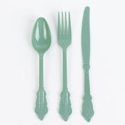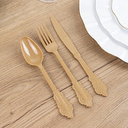 72 Baroque Style Heavy Duty Plastic Cutlery Spoons Forks and Knives Set - Disposable Tableware