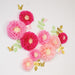 21 Tissue Paper Pom Poms Chrysanthemum Flowers with Butterflies and Leaves Set
