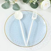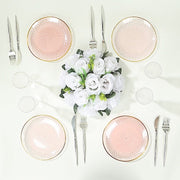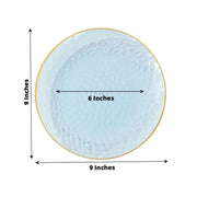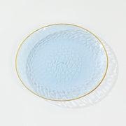 10 Glossy Round Plastic Salad and Dinner Plates with Gold Rim - Disposable Tableware
