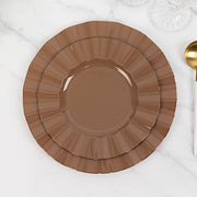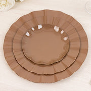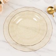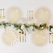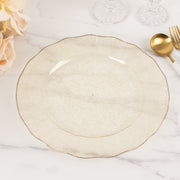 10 Round Plastic Salad Dinner Plates with Gold Wavy Rim - Disposable Tableware