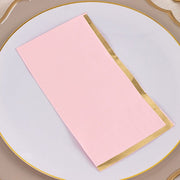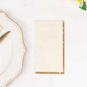 50 Soft 2 Ply Dinner Paper Napkins with Gold Foil Edge