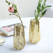 2 pcs 8" tall Mercury Glass Geometric Vases - Gold
