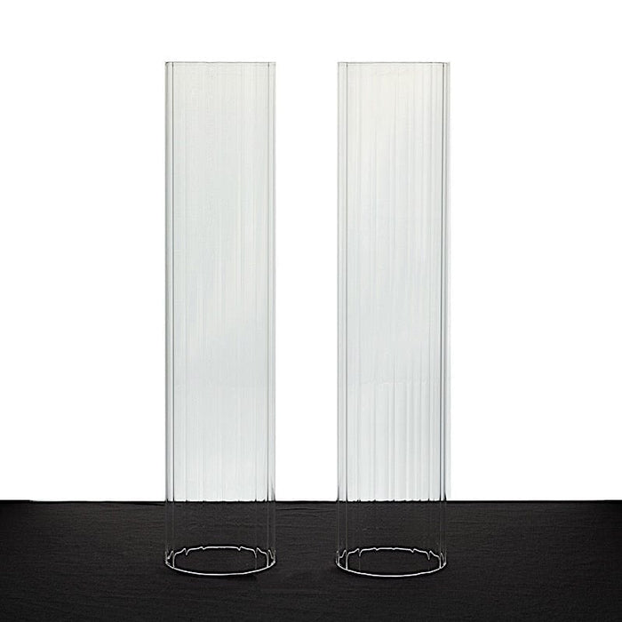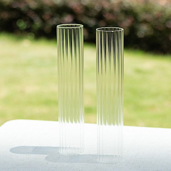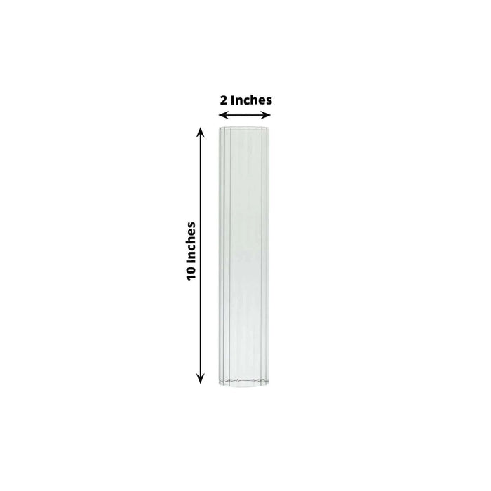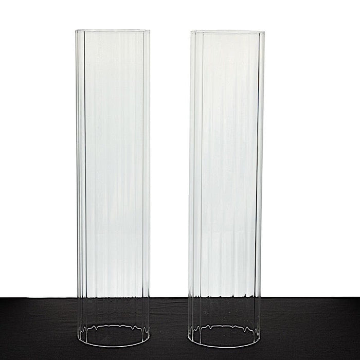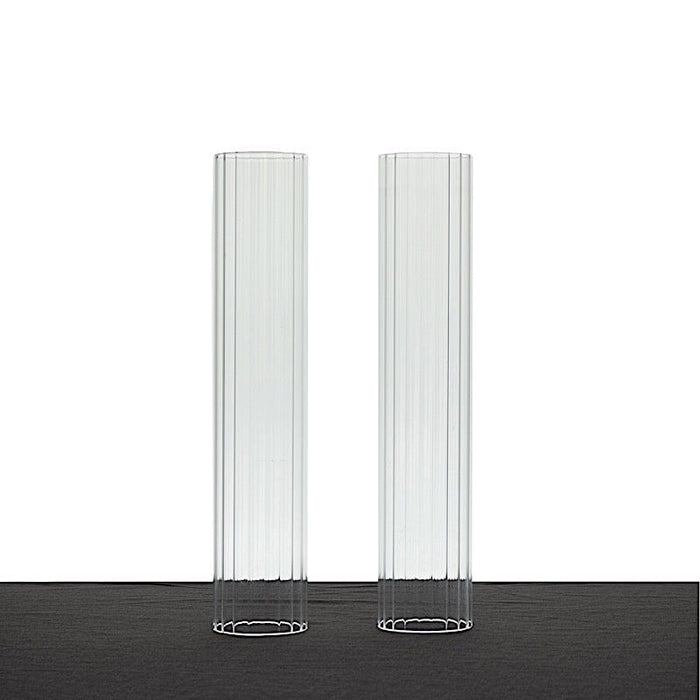 Enhance the warmth of your party or home with candles nestled in hurricane glass candle shades from Leilani Wholesale! Crafted from high-quality glass with ribbed cylinder tubes and wide open ends, these candle shades are a perfect match for pillar candles, candle plates, and candelabra holders. Ideal for weddings, events, and parties, they will add an elegant touch and create a beautifully illuminated ambiance in any setting.