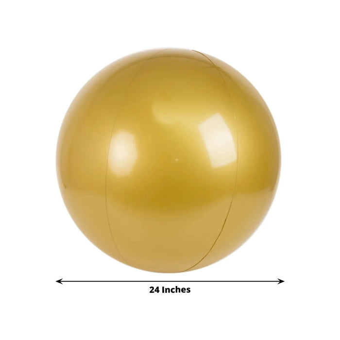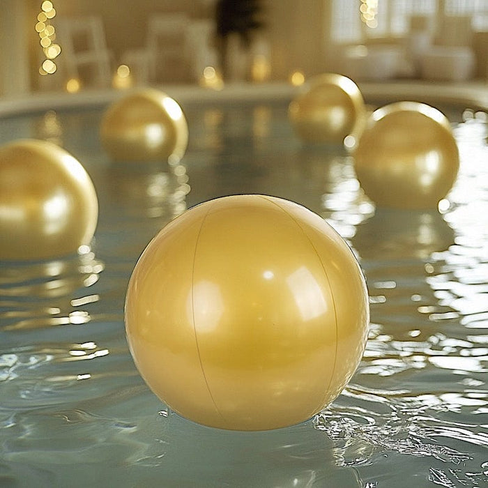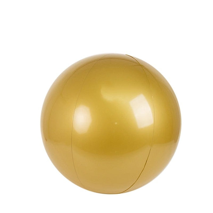 Add a touch of fun and sparkle to any occasion with these inflatable gold beach ball! Perfect for pool parties, beach days, weddings, or holidays, its vibrant color and shiny finish bring a festive flair to your event. Easy to inflate, deflate, and store, these lightweight, reusable beach balls are also portable, making them ideal for outdoor gatherings. Pair them with arches or arbors to create a whimsical atmosphere that guests of all ages will enjoy.