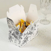 Send your guests home with special keepsakes in these stylish favor boxes from Leilani Wholesale! These tote favor boxes are crafted from high quality paper with a charming flower-printed design. Ideal for holding your candies, chocolates, nuts or any sweet party treats and small gifts. Personalize these treat boxes with stickers or tags to add style and make your "Thank you" gifts truly special.
