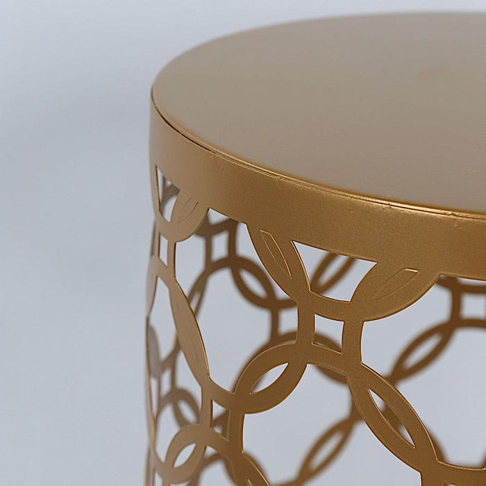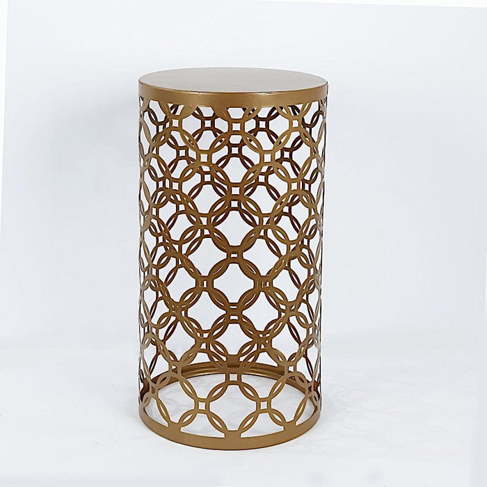 Showcase the beauty of your decorative pieces with pedestal stands from Leilani Wholesale! This stand, crafted from high-quality metal, features a Cylinder Plinth with a Hollow Overlapping Circles Pattern. It’s perfect for displaying small flowers, succulents, vases, candles, and centerpieces, or even as a dessert stand for weddings, parties, and events. Let your imagination run wild with your dream decorations!