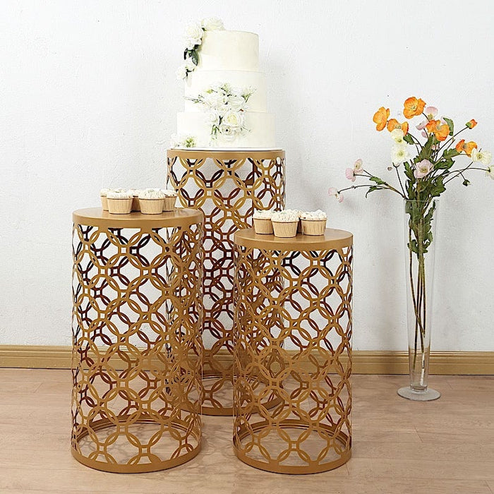3 Metal Cylinder Plinth Pedestal Stands - Gold
