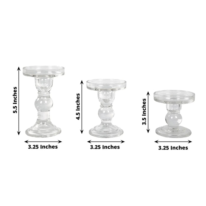 3 Premium Glass Pillar Candle Holders with Round Tray