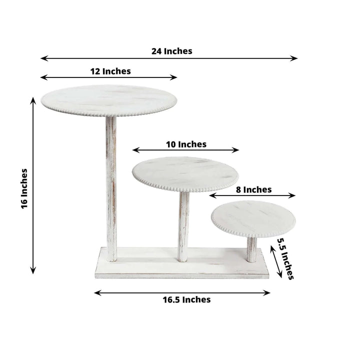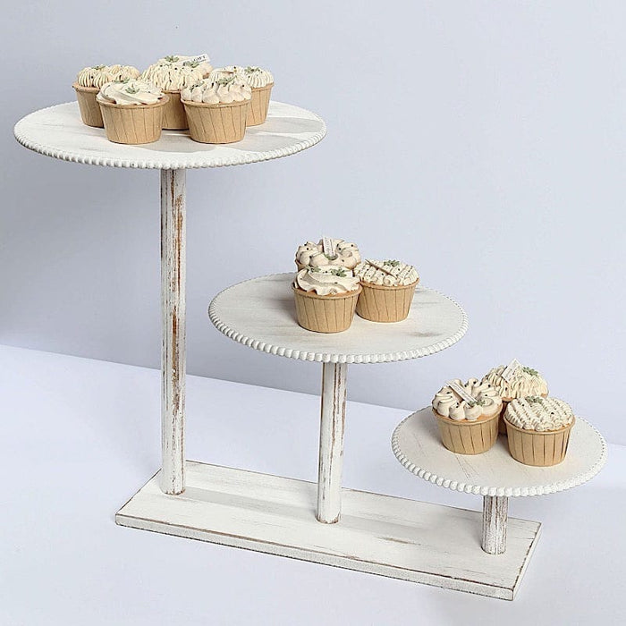 3-Tier Wooden Cake Stand with Round Beaded Rim Trays - Whitewash