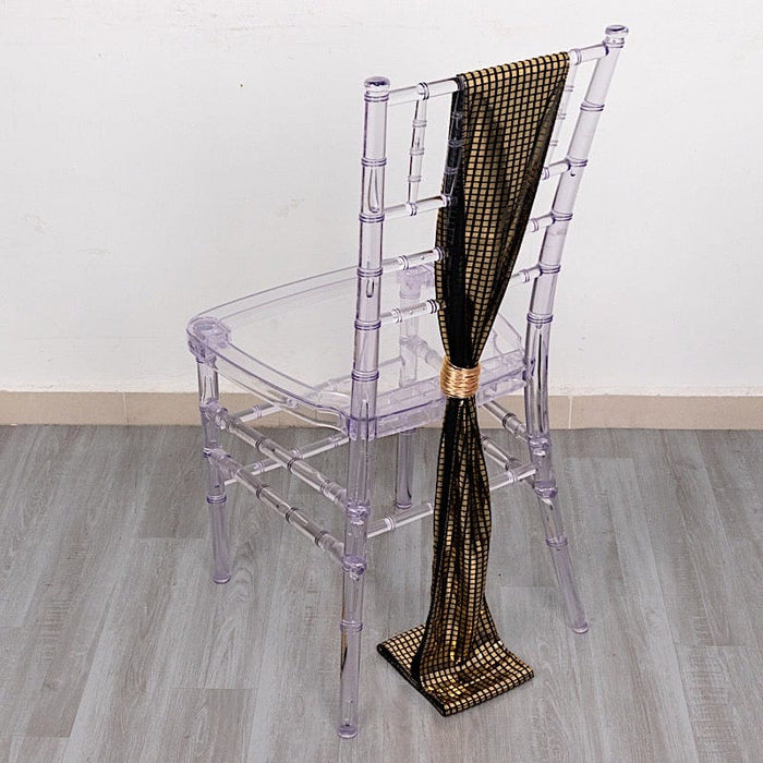 5 Polyester Chair Sashes with Mirror Foil Design - Black and Gold