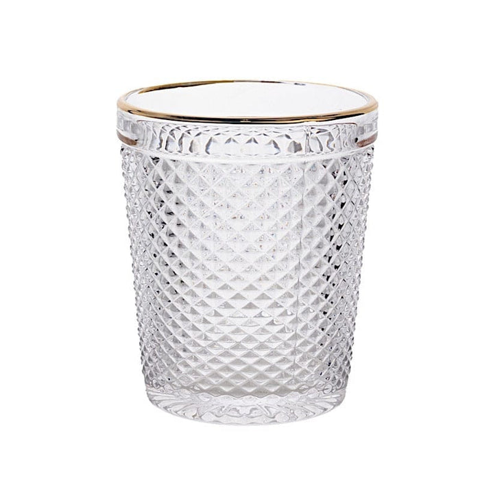 6 pack 11 oz Tumbler Glasses Hobnail Design with Gold Rim - Clear