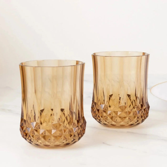 6 pcs 8 oz Crystal Cut Plastic Stemless Wine Glasses