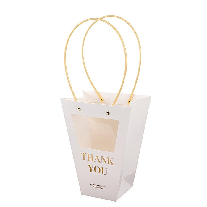 6 Window Paper Flower Gift Bags with Handles - Clear and White