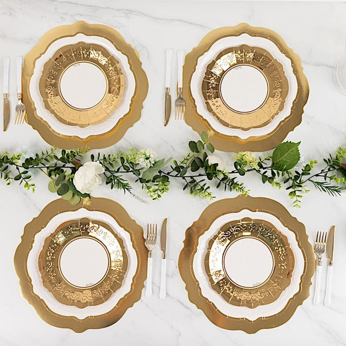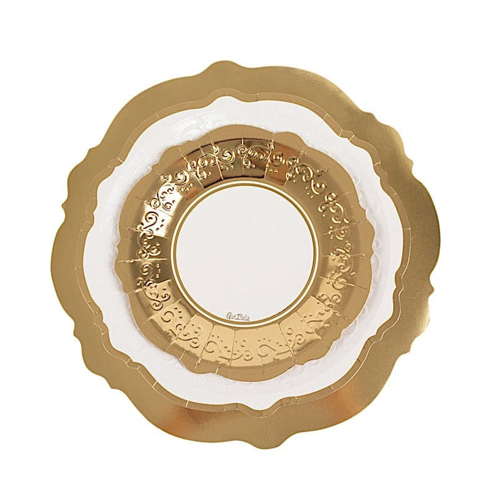 75 Heavy Duty Paper Plates with Embossed Scalloped Rim - White Gold