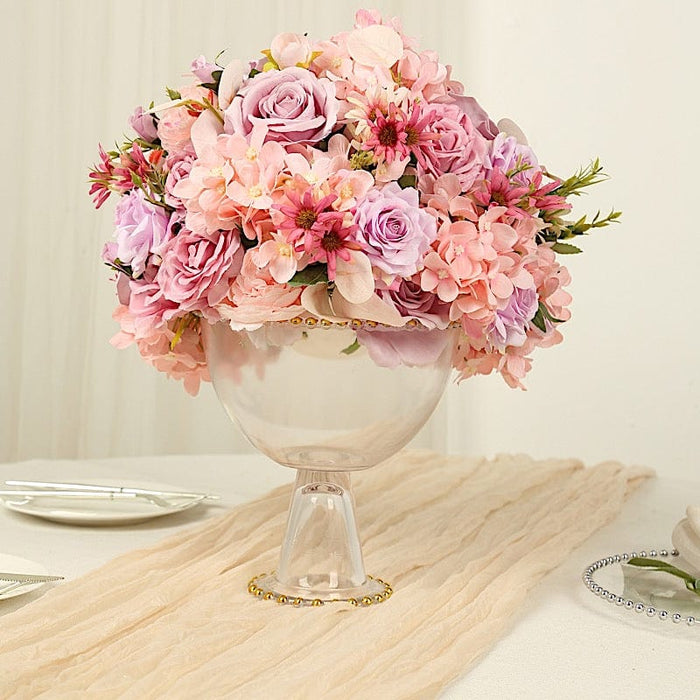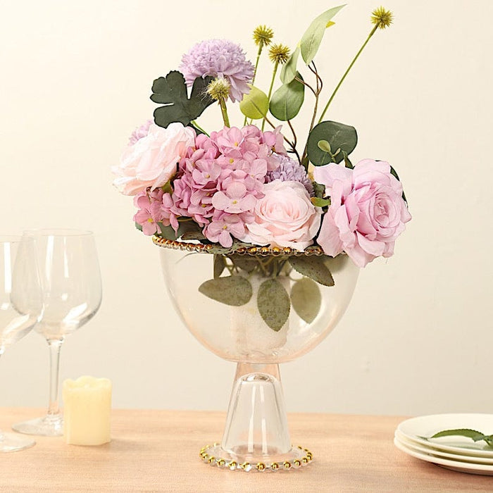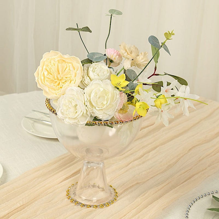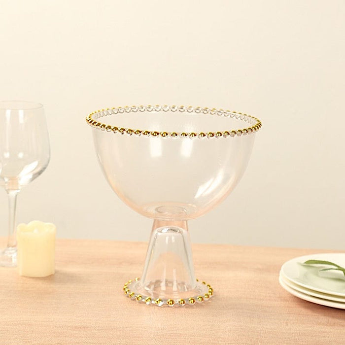 8" Pedestal Bowl Glass Flower Vase with Gold Beaded Rim - Clear
