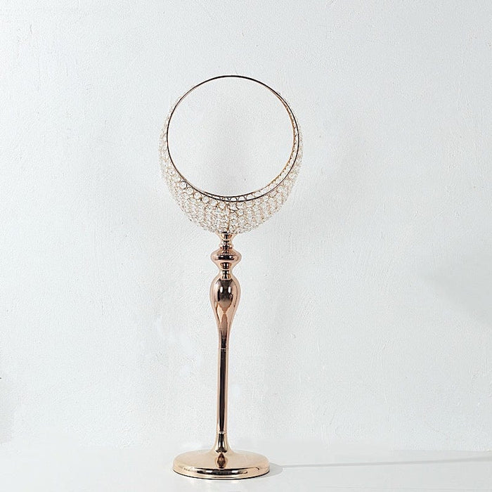 3 ft Crystal Beaded Metal Candle Holder Stand in Half Moon Basket Design - Gold
